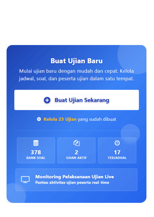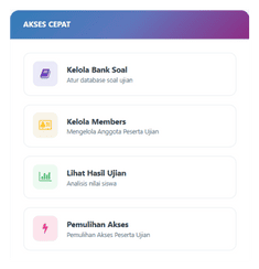 Platform Computer Based Test (CBT) dengan analisis hasil ujian otomatis untuk membantu sekolah mengevaluasi hasil belajar siswa secara cepat dan objektif.